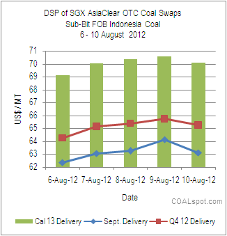 Cal 2013 deliveries for Sub-Bit Indonesia coal was traded average at $ 70.10 pmt on 10 August 2012, which is $ 4.84 higher than September delivery price.