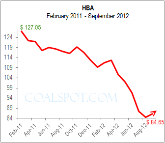 HBA GAINS $ 1.56 PER MT IN SEPTEMBER