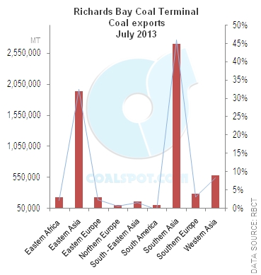 COALspot.com - Richards Bay Coal Terminal (RBCT) is the single largest coal export terminal South African as well as in the world has shipped 6,162,787 MT tons of coal in July 2013.