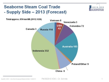 Verein der Kohlenimporteure e.V. (VDKi) has submitted its initial estimates for the world hard coal market and the German and European hard coal import market for the whole of 2013, based on a data analysis up to the end of October 2013.