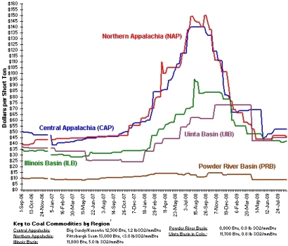 A drop in domestic output now has China importing more coal--at the highest prices in over a year. Since the recession hit in earnest in August 2008 (a full year after the sub-prime mortgage sector blew up) coal prices globally have taken a beating, right back to where they were in early 2007.