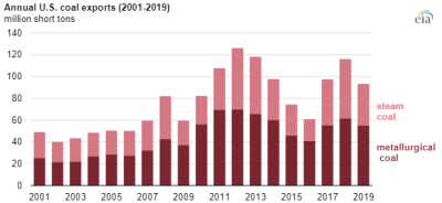 U.S. COAL EXPORTS DECLINED IN 2019 - EIA